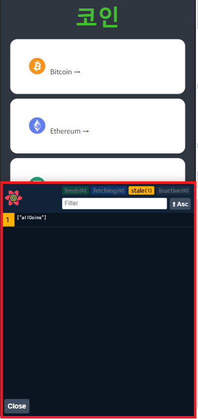 - 파라미터 있는 경우 : ()  =>  fetchCoinInfo(cionId)