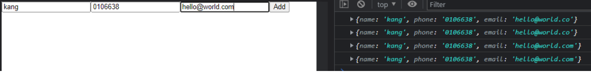 Form의 입력값들의 변화를 관찰 할 수 있다.