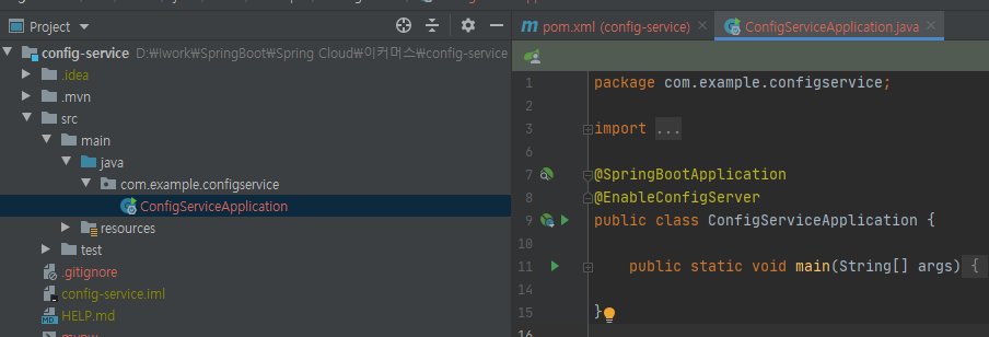 Config Server 역할을 하기 위한 @EnableConfigServer 어노테이션 추가